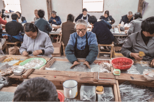 这场“化学反应”最生动的体现,就在村民的家门口。在合村乡合村村的共富套笔点,不少村民利用闲暇时间从事笔头组装。“一天能挣五六十元,每年能为家里增收一万多元。”村民陈宝莲说。