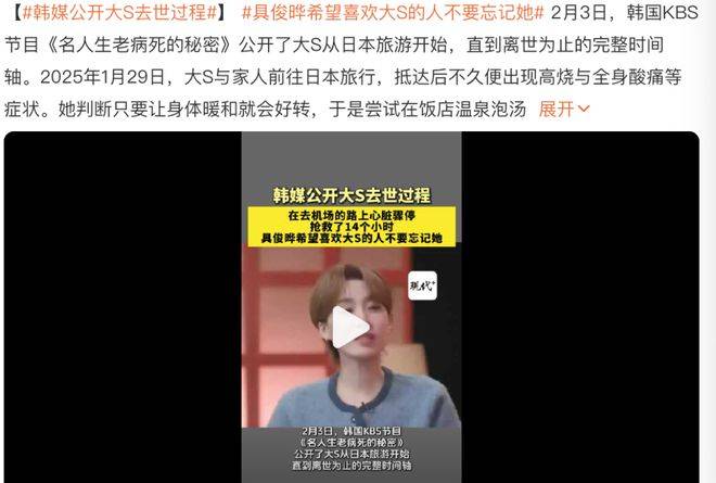 节目的后续,主持人也转述了工作人员的采访内容,提到具俊晔在节目录制中情绪非常低落,还表示自己不愿接受采访,并强调希望喜欢大S的人不要忘记她。但是,这档节目看似是为了怀念大S,实则是在恶意消费她的死。具俊晔在节目中将大S猝死的隐私暴露无遗,让节目里的主持人和嘉宾纷纷发表意见,品头论足地谈论她,仿佛是在吃大S的人血馒头。此外,具俊晔还一再去大S的墓地,这一年间他几乎每次去都带着摄影师,全程录制,仿佛在不断地卖弄自己对大S的深情。