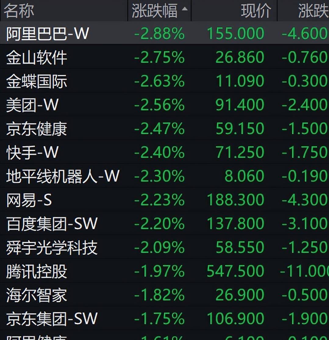在这种全球性的焦虑情绪下,那两则关于税收的“小作文”就像是一颗火星,掉进了干柴堆。 2月3日,市场反应极其剧烈。 除了腾讯盘中闪崩,快手一度跌超7%,哔哩哔哩、百度、腾讯的跌幅都曾超过6%,阿里巴巴也一度跌近5%。 恒生科技指数的跌幅瞬间扩大至3%以上。