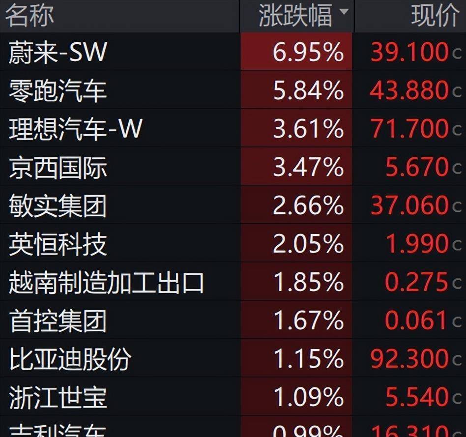 这不是某一只股票的单独调整,而是整个板块的普跌。 资金从这些曾经的“明星股”里流出,转向了另一个方向。 汽车板块成为了当天的避风港,蔚来汽车大涨6.91%,零跑汽车涨了5.33%,理想汽车涨幅也超过3%。 市场资金的偏好,正在发生一次快速的切换。